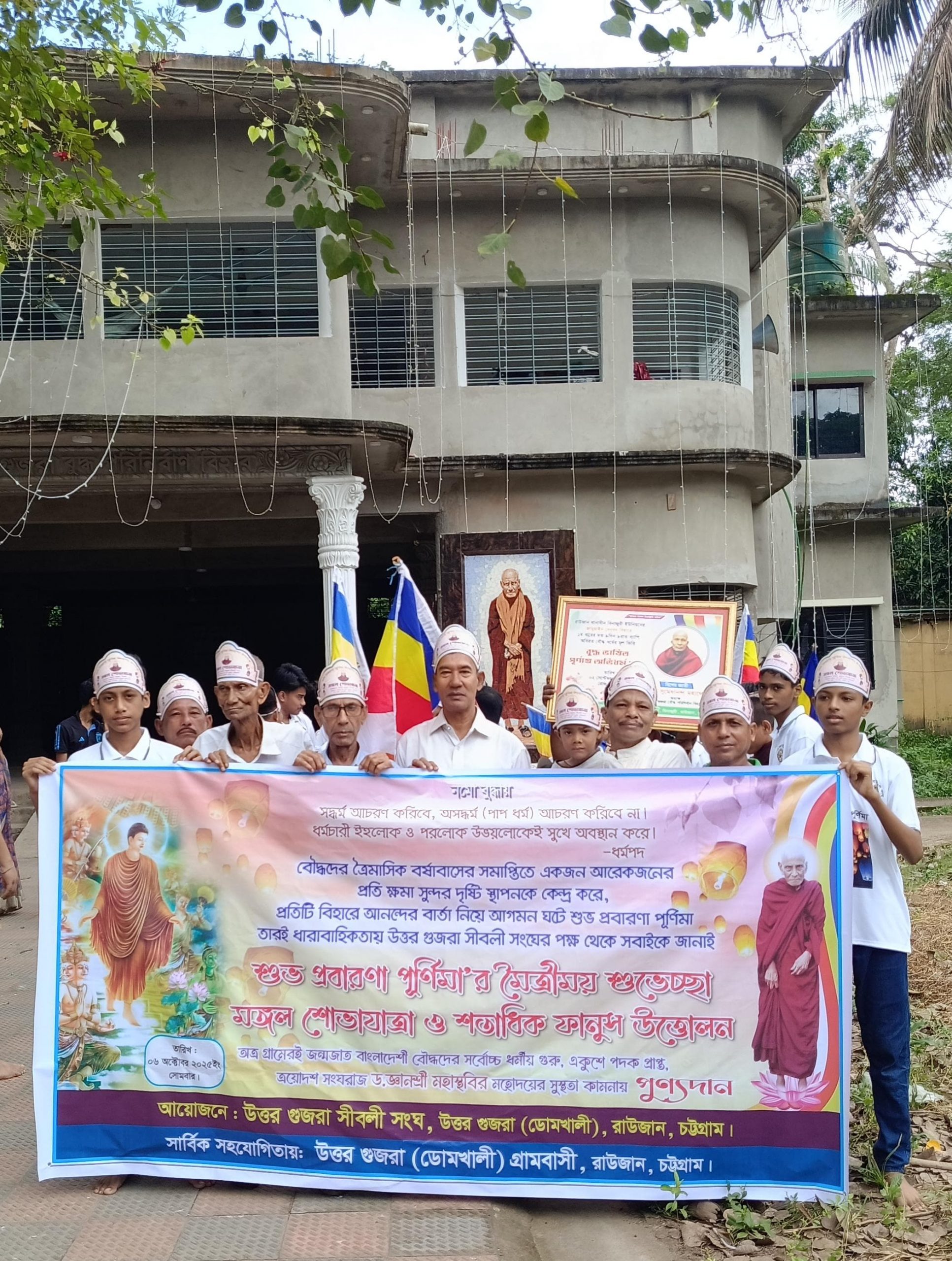 রাউজান থানাধীন ঐতিহ্যবাহী বৌদ্ধপল্লী উত্তর গুজরায় শুভ প্রবারণা পূর্ণিমা উপলক্ষে শতাধিক ফানুস উত্তোলন উৎসব অনুষ্ঠিত হয়েছে। সোমবার দিনব্যাপী এই আয়োজন করে স্থানীয় সামাজিক সংগঠন উত্তর গুজরা সীবলী সংঘ। বাংলাদেশি বৌদ্ধদের সর্বোচ্চ ধর্মীয় গুরু, একুশে পদকপ্রাপ্ত মহামান্য সংঘরাজ ড. জ্ঞানশ্রী মহাস্থবিরের জন্মভূমি উত্তর গুজরা (ডোমখালী) গ্রামে এ অনুষ্ঠানে সকালে ছিল নানাবিধ ধর্মীয় ও সামাজিক কর্মসূচি। সকাল ৮টায় বিশ্ব শান্তি কামনায় মঙ্গল শোভাযাত্রা অনুষ্ঠিত হয়। এরপর সংঘরাজ ড. জ্ঞানশ্রী মহাস্থবিরের প্রতিকৃতিতে শ্রদ্ধা জ্ঞাপন এবং বিহারাধ্যক্ষ ভদন্ত সুমেধানন্দ মহাস্থবিরকে শ্রদ্ধা নিবেদন করা হয়। এছাড়া আয়োজনে অষ্টশীল ও পঞ্চশীল গ্রহণের পাশাপাশি সন্ধ্যায় চিত্রশিল্পীদের আঁকা বুদ্ধের আকৃতি ধারণ করা নান্দনিক শতাধিক ফানুস উত্তোলন করা হয়। অনুষ্ঠানে উত্তর গুজরা বুদ্ধ পরিনির্বাণ বিহারের দায়ক-দায়িকাবৃন্দ বুদ্ধ পূজা এবং অত্র গ্রামের ফ্রান্স প্রবাসীদের অর্থায়নে সকলের জন্য মধ্যাহ্ন ভোজ ও পানীয় বিতরণের ব্যবস্থা করা হয়।