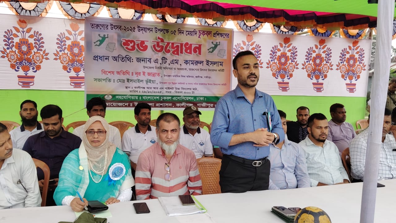 গাজীপুরের কালীগঞ্জে তারুণ্যের উৎসব-২০২৫ উদযাপন উপলক্ষ্যে উপজেলা প্রশাসনের আয়োজনে বাংলাদেশ চুকবল এসোসিয়েশনের সহযোগিতায় পাঁচদিন ব্যাপী চুকবল প্রশিক্ষণের উদ্বোধন করা হয়েছে।