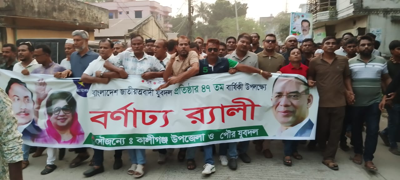 গাজীপুরের কালীগঞ্জে ব্যাপক আনন্দ উদ্দীপনার মধ্য দিয়ে বাংলাদেশ জাতীয়তাবাদী যুবদলের ৪৭তম প্রতিষ্ঠাবার্ষিকী উদযাপন করেছে উপজেলা ও পৌর যুবদলের উদ্যোগে আলোচনা সভা, বৃক্ষরোপন কর্মসূচি, বর্নাঢ্য র্যালি ও দোয়া মাহফিল অনুষ্ঠিত হয়েছে। মঙ্গলবার (২৮ অক্টোবর) বিকালে দলীয় নেতাকর্মীরা বিভিন্ন ইউনিয়ন ও কালীগঞ্জ পৌর সভার বিভিন্ন ওয়ার্ড থেকে মিছিল নিয়ে কালীগঞ্জ আর আর এন পাইলট সরকারী উচ্চ বিদ্যালয় মাঠে সমবেত হয়। পরে উপজেলা যুবদলের আহবায়ক আলী নুর হাসানের সভাপতিত্বে সদস্য সচিব হাসানুর রহমান (জুয়েলের) পরিচালনায় আলোচনা সভায় বক্তব্য রাখেন, উপজেলা বিএনপির আহবায়ক মো. হুমায়ুন কবির মাষ্টার, সদস্য সচিব খালেকুজ্জামান বাবলু, কালীগঞ্জ পৌর যুবদলের আহবায়ক কায়েস ইসলাম প্রমুখ। এই সময় জেলা বিএনপির আহবায়ক কমিটির সদস্য মো. খাইরুল আহসান মিন্টু, কালীগঞ্জ পৌর বিএনপির সদস্য সচিব মো. ইব্রাহীম প্রধান, উপজেলা যুবদলের সিনিয়র যুগ্ম আহবায়ক মুজিবুর রহমান, যুগ্ম আহবায়ক দেলোয়ার হোসেন, শহিদুউজ্জামান সোহেল, নঈম শাহারিয়ার মাসুম, হুমায়ুন সরকার, মোয়াজ্জেম হোসেন, কামরুল ইসলাম, পৌর যুবদলের সদস্য সচিব রাশিদুল হাসান রিপন, সিনিয়র যুগ্ম আহবায়ক শাহীন বেপারী, যুগ্ম আহবায়ক মো. সফিকুল ইসলাম সফিক, নুর মোহাম্মদ প্রমুখ উপস্থিত ছিলেন। আলোচনা সভা শেষে কালীগঞ্জ পাইলট স্কুলের পুকুর পাড়ে বৃক্ষরোপন শেষে যুবদলের ৪৭তম প্রতিষ্ঠাবার্ষিকীর একটি বর্ণাঢ্য র্যালী কালীগঞ্জের প্রধান প্রধান সড়ক প্রদক্ষিণ করে উপজেলা কেন্দ্রীয় শহীদ মিনারে গিয়ে শেষ হয়। সভায় বক্তারা বলেন, "বর্তমান অন্তর্বর্তীকালীন সরকার দেশের সকল রাজনৈতিক দলের সাথে আলোচনা সাপেক্ষে আগামী ২০২৬ সালের ফেব্রুয়ারি মাসে জাতীয় সংসদ নির্বাচন করার সিদ্ধান্ত নিয়েছে। এই নির্বাচনকে বানচাল করার জন্য দেশী এবং বিদেশী ষড়যন্ত্র চলছে। এই নির্বাচন যাতে কোনো ভাবে বানচাল করতে না পারে সে বিষয়ে যুবদলকে অতন্দ্র প্রহরীর ভূমিকা পালন করতে হবে।অবশেষে শহীদ রাষ্ট্রপতি জিয়াউর রহমানের আত্মার মাগফেরাত কামনা করে, বেগম খালেদা জিয়ার সুস্থতা এবং তারেক রহমানের দীর্ঘায়ু কামনাসহ জুলাই আন্দোলন-সংগ্রামে নিহত সকল শহীদের আত্মার মাগফিরাত কামনা ও দেশবাসীর জন্য দোয়া করা হয়।দোয়া পরিচালনা করেন কালীগঞ্জ পৌর ওলামা দলের আহবায়ক মুফতি শফিকুল ইসলাম।