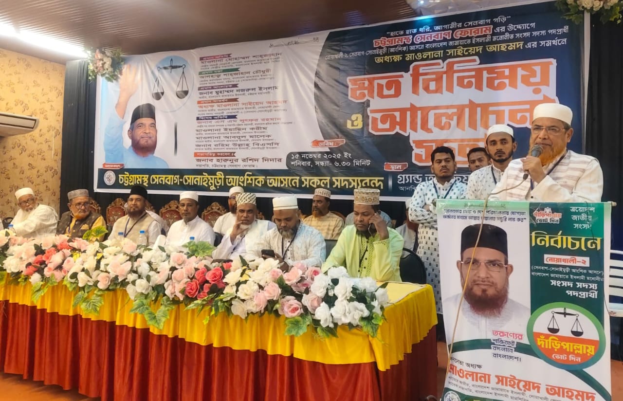 রবিবার (রাত ৮ টায়) চট্টগ্রাম গ্র্যান্ড তাসফিয়া কমিউনিটি সেন্টারে চট্টগ্রামস্থ সেনবাগ ফোরামের উদ্যোগে নোয়াখালী-২, আসনের সংসদ সদস্য পদপ্রার্থী অধ্যক্ষ সৈয়দ আহমদের সমর্থনে এক মতবিনিময় ও আলোচনা সভায় প্রধান অতিথির বক্তব্যে তিনি এসব কথা বলে।