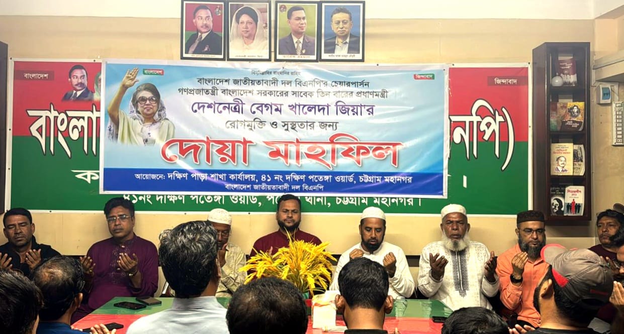 বাংলাদেশ জাতীয়তাবাদী দল (বিএনপি)-এর চেয়ারপার্সন ও গণপ্রজাতন্ত্রী বাংলাদেশ সরকারের সাবেক প্রধানমন্ত্রী দেশনেত্রী বেগম খালেদা জিয়া’র রোগমুক্তি ও সুস্থতা কামনায় দক্ষিণ পতেঙ্গায় দোয়া মাহফিল অনুষ্ঠিত হয়েছে।